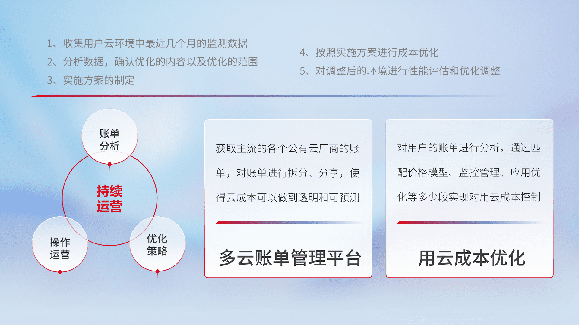 运用智能化工具分析云资源,,,提供日常费用可视化工具,,自动账单拆分,,,,成本优化云上费用,,,降本增效。。